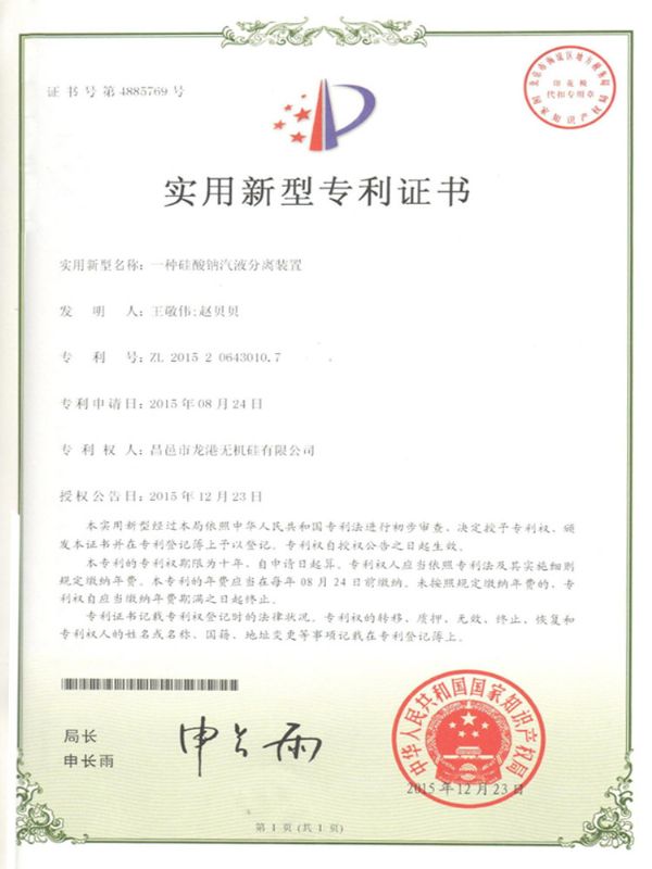科技成果 科技創(chuàng)新平臺 TECHNOLOGICAL HOME-TECHNOLOGICAL Utility model patent certificate Related Information New Silicon Based Flame RetardantLiquid Potassium SilicateSodium OrthosilicateSodium Silicate LiquidSodium Metasilicate Pentahydrate